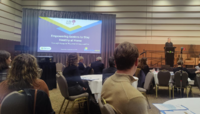 Hospital pharmacist and researcher Savannah Davis shares the team's research with a mixed audience of interdisciplinary researchers and government stakeholders.